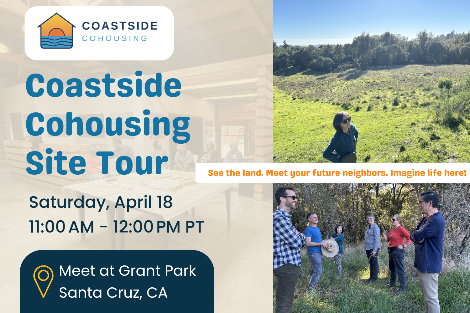 Join us on-site in Santa Cruz County for a special in-person introduction to Coastside Cohousing. This tour is your chance to see the land where our future neighborhood will take shape and imagine what community living could look like here.